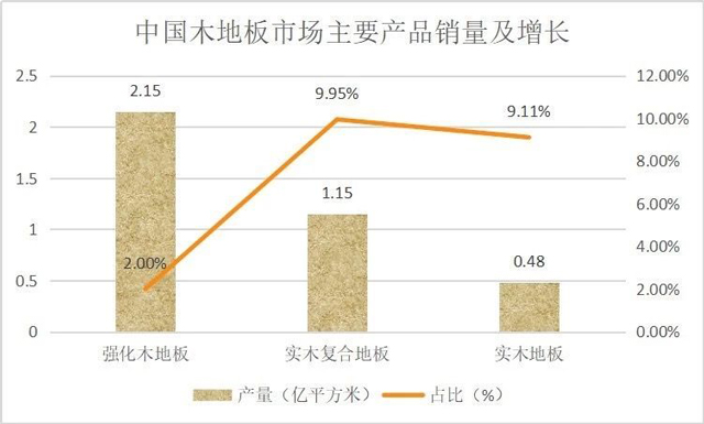 其中強(qiáng)化木地板銷售2.15億平方米,同比增長2%;實(shí)木復(fù)合地板銷售115億平方米,同比增長9.95%;實(shí)木地板銷售0.48億平方米,同比增長9.11%。
